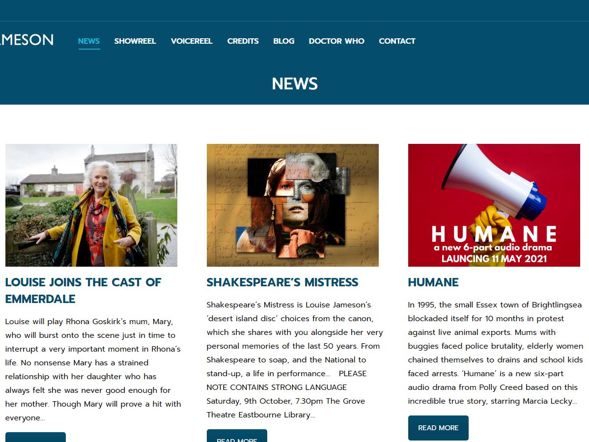 Client: Louise Jameson Category: Actors, Creatives Date: February 2021 Visit website Share this post Share on FacebookShare on Facebook Share on XShare on X Share on LinkedInShare on LinkedIn Pin itShare on Pinterest Share on WhatsAppShare on WhatsApp